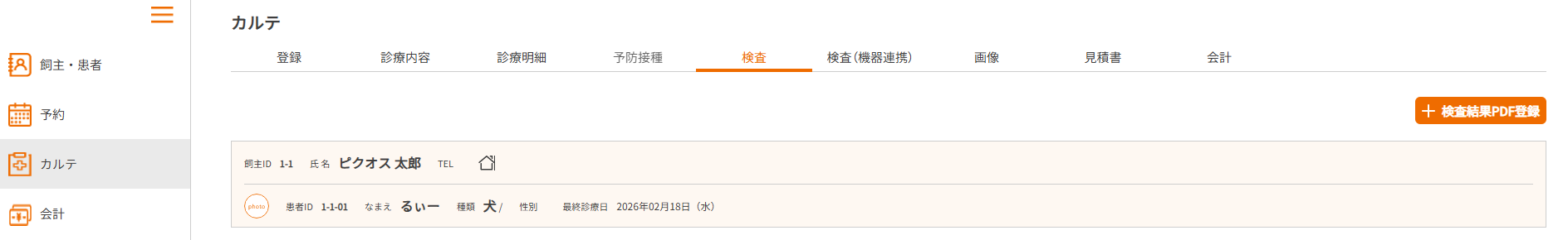 ・患者さん毎のカルテの検査画面にPDFを登録・確認できる機能の追加